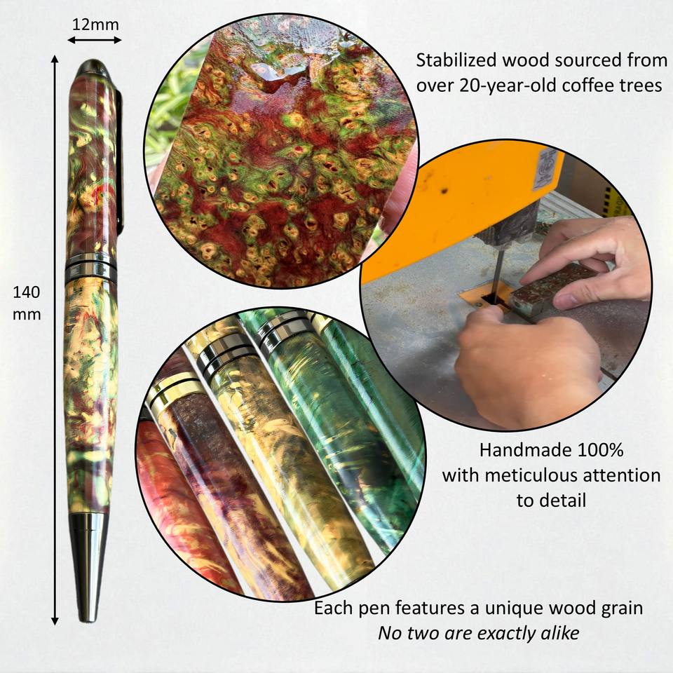 Bolígrafo promocional de lujo, bolígrafos de madera estabilizados ecológicos con logotipo personalizado, lápiz óptico grabado, bolígrafo Burl único, zafiro
