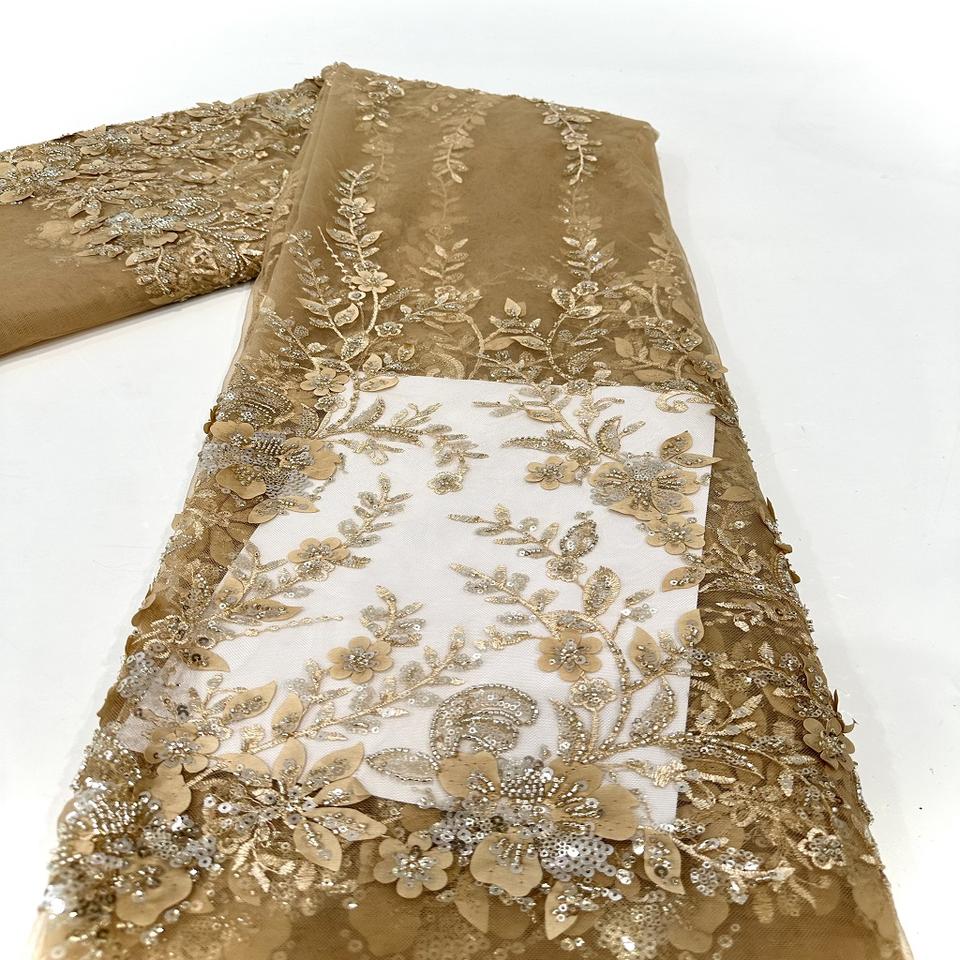 Tela de encaje bordado con cuentas moradas de lujo para vestidos de novia y boda tela de patio de alta costura
