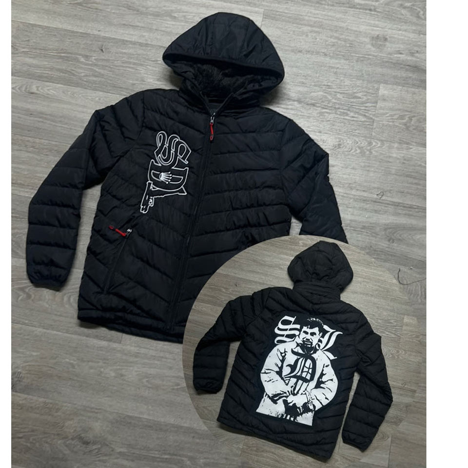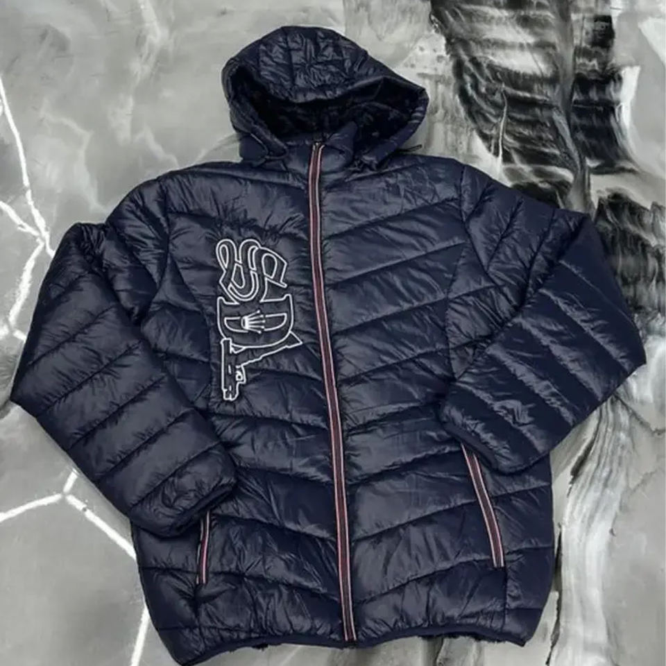 Chaqueta con Cremallera SDL de Impresión Puff de Calidad de Lujo para Hombre, Personalizada, Estilo Urbano Extragrande, con Capucha, Logotipo Frontal, Informal