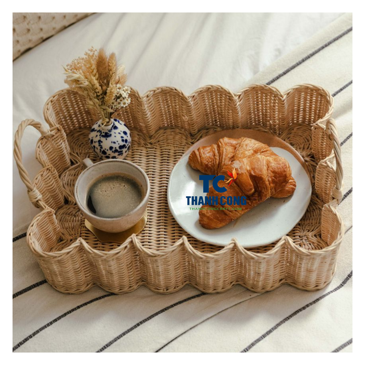 BANDEJA DE RATÁN de lujo Bandeja redonda hecha a mano de Vietnam con tejido resistente para servir en la mesa o decoración elegante del hogar