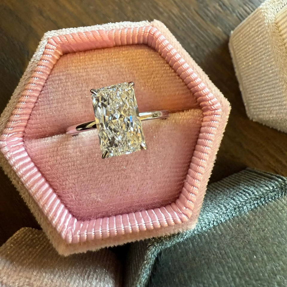 Anillo llamativo de diseñador de lujo para mujer, Diamante cultivado en laboratorio de corte radiante para compromiso, boda, regalo nupcial, joyería fina