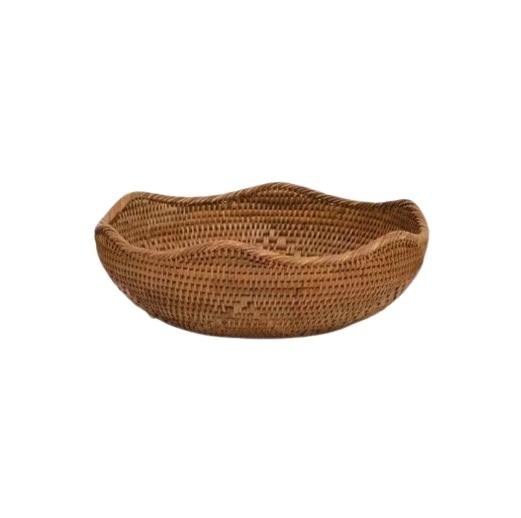 Cuenco de mimbre de lujo con asa, cuenco tejido hecho a mano para frutas, aperitivos, nueces, almacenamiento de cocina, mesa, uso doméstico de la India