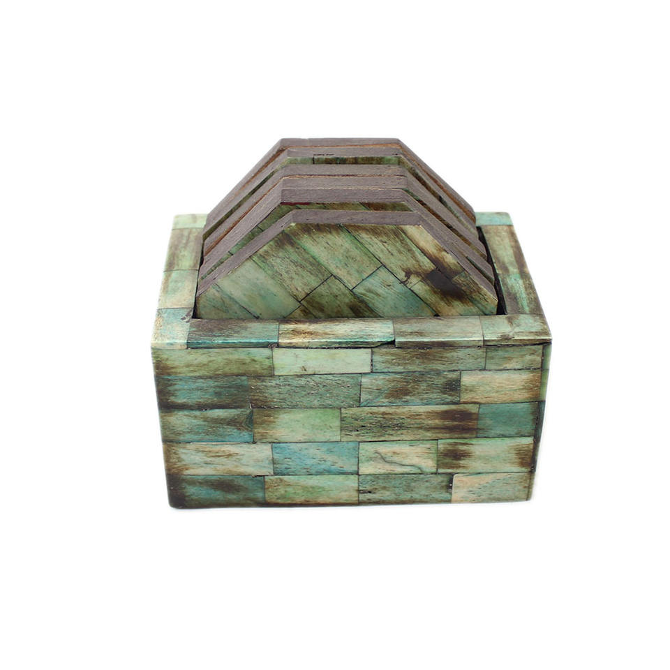 Posavasos con incrustaciones de hueso Real, taza de posavasos de resina hecha a mano con forma redonda para utensilios de cocina