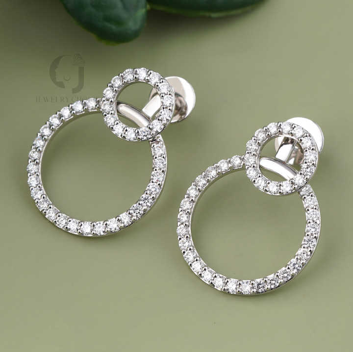 Pendientes Colgantes de Doble Círculo con Diamantes de Laboratorio de Lujo, Oro Blanco de 14 Quilates, Aros Redondos Geométricos con Pavé, Color Oro Blanco Minimalista