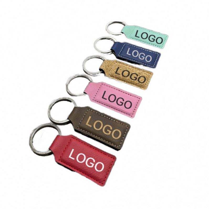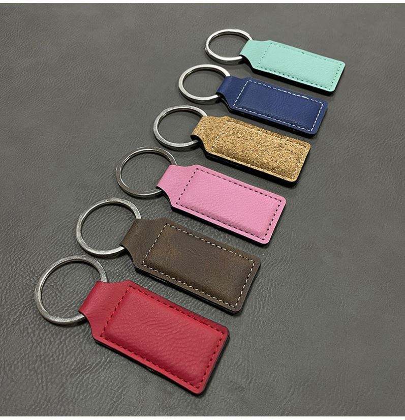 Luxury Rectangle Circle & Oval Shape Keychains Laserable Leatherette PU Leather Keyring Fashionable Metal Engraving Keychains
