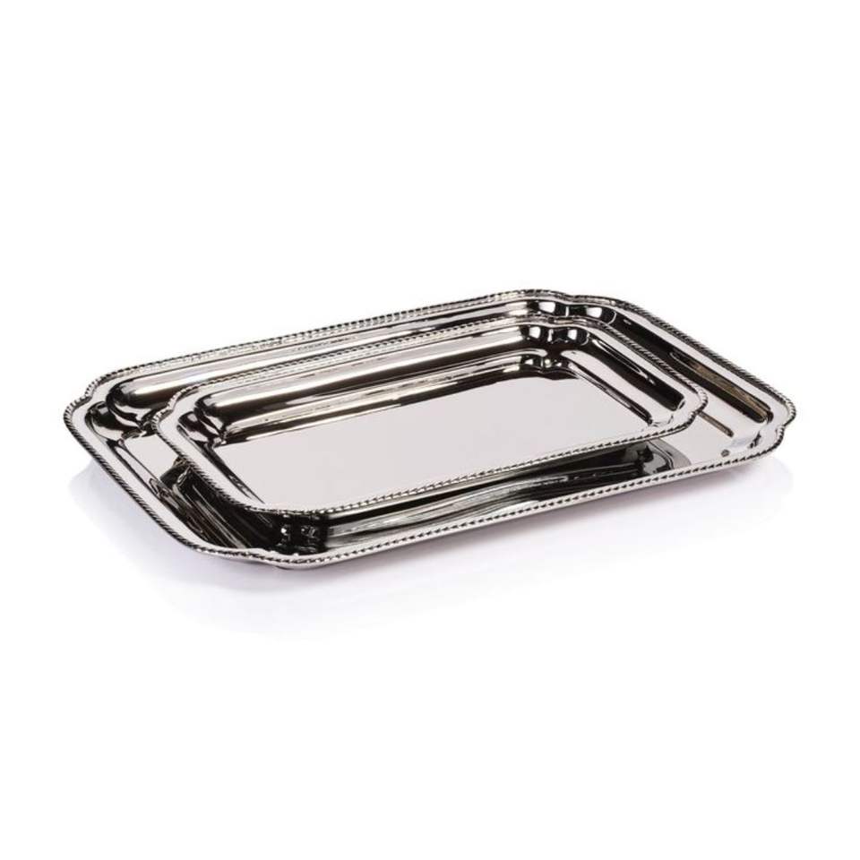 Juego de Bandejas Rectangulares de Lujo de Acero Inoxidable Pulido con Borde Decorativo de Cuentas, Plato de Metal para Servir Alimentos para Hotel y Hogar