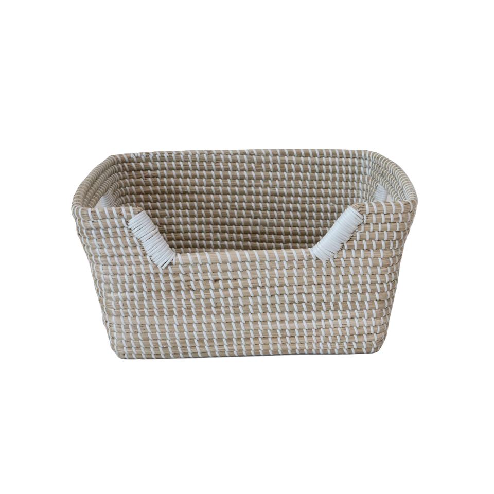 Cesta Rectangular de Lujo de Mimbre Marino con Diseño Multifuncional para Organización/Almacenamiento