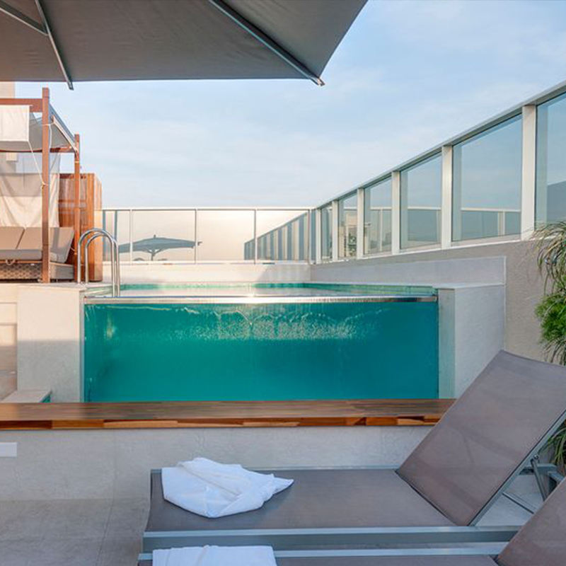 Piscina de fibra de vidrio rectangular de lujo para piscina, piscina de acrílico transparente personalizada