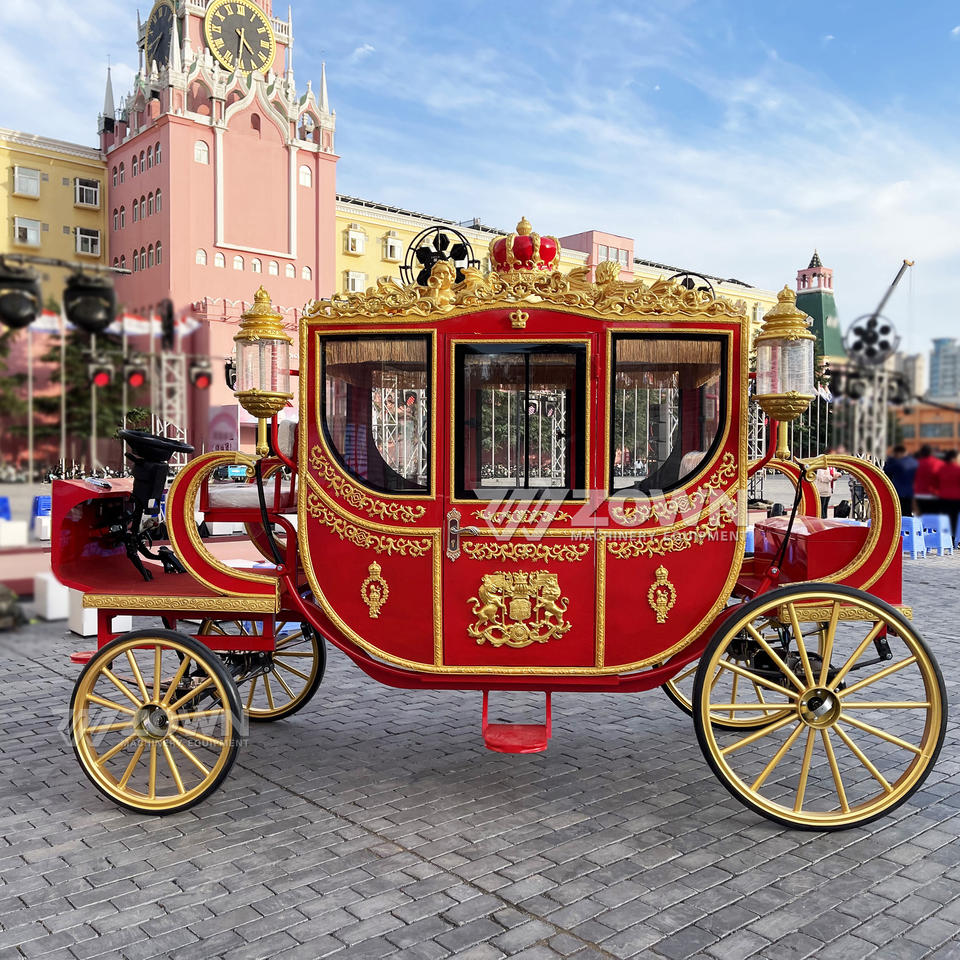 Carruaje de caballos eléctrico de 4 ruedas rojo de lujo para bodas reales Transporte especial al aire libre Carruaje de caballos elegante