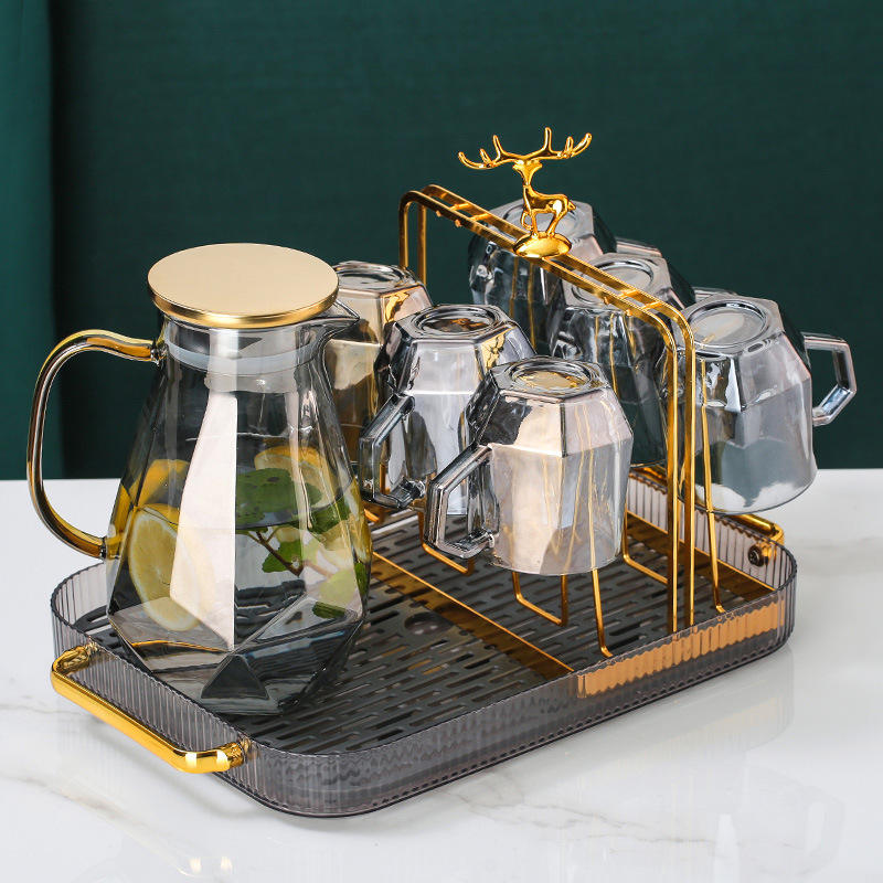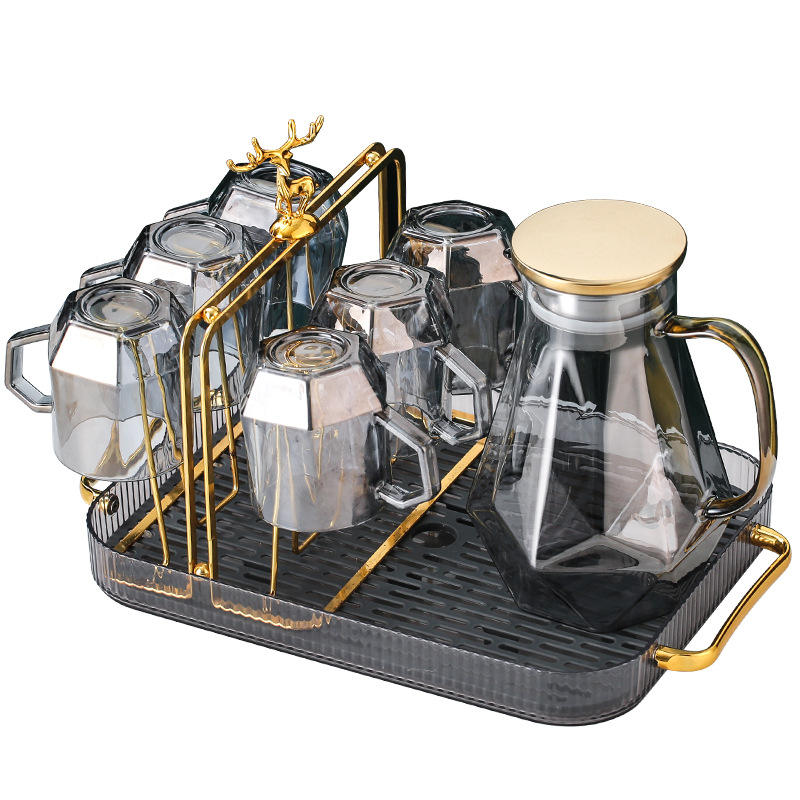 Elegante Escurridor de Vasos con Tapa Metálica y Juego de Jarras de Vidrio, Escurridor Cuadrado para Almacenamiento de Vasos de Agua en la Cocina, Tamaño L