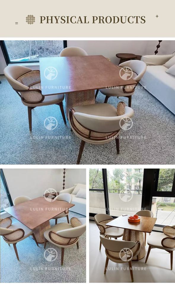 Juego de comedor de mesa de madera de ratán de campo Retro de lujo 4 sillas estilo de diseño moderno de madera maciza para el hogar comedor Hotel restaurante