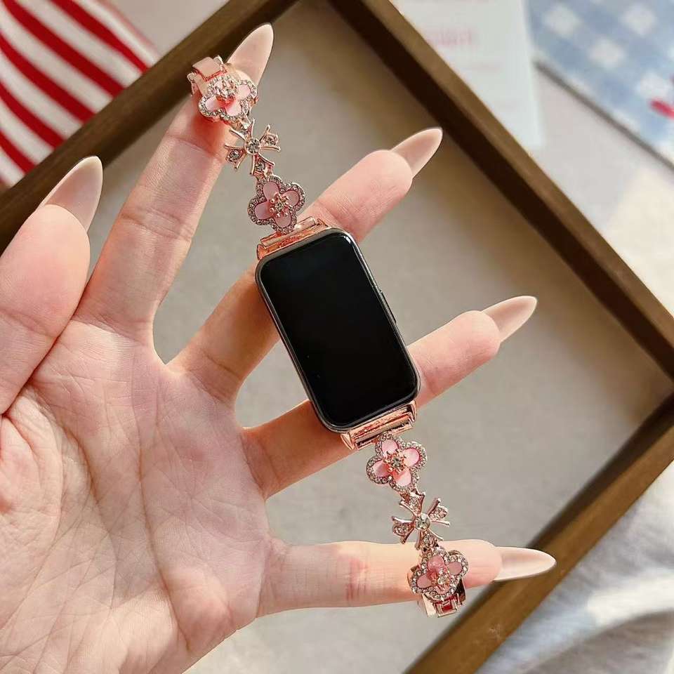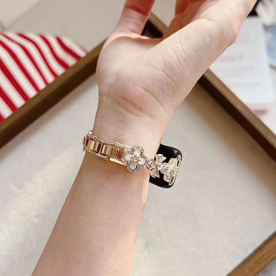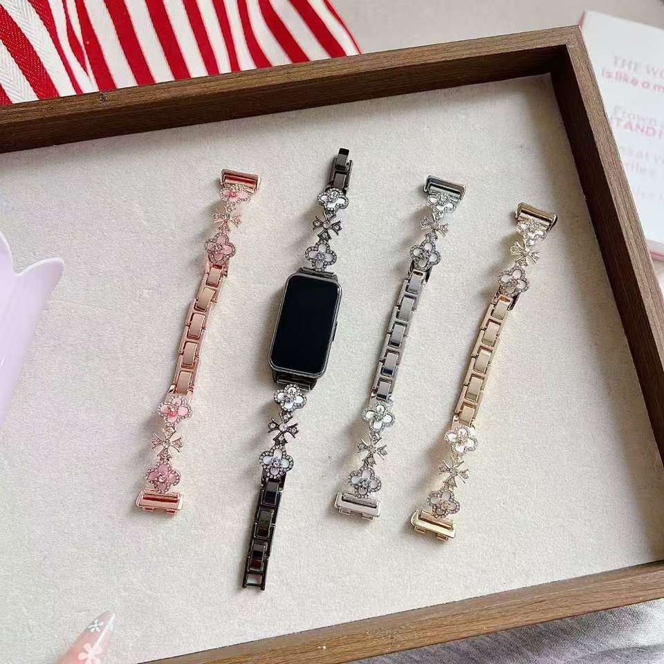 Correa de Reloj de Lujo con Trébol de Cuatro Hojas y Diamantes de Imitación, Compatible con Apple Watch 10/S11, Huawei Fit4/GT6, Xiaomi Band 10