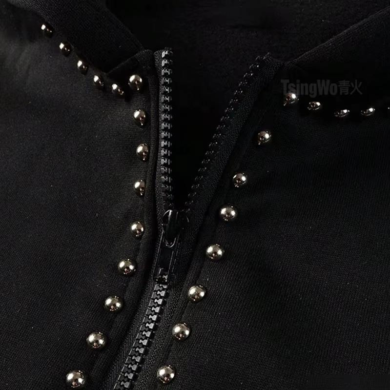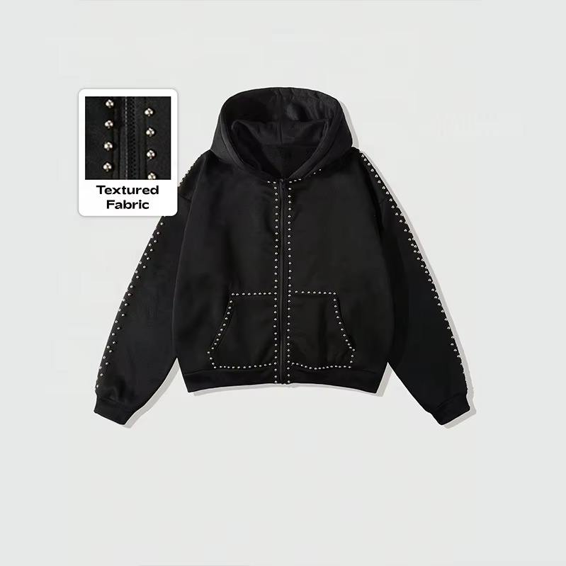Sudadera con Capucha de Lujo con Pedrería, Sudadera Personalizada con Cristales Brillantes, Colección de Invierno de Ropa Urbana Oversize, Proveedor al por Mayor