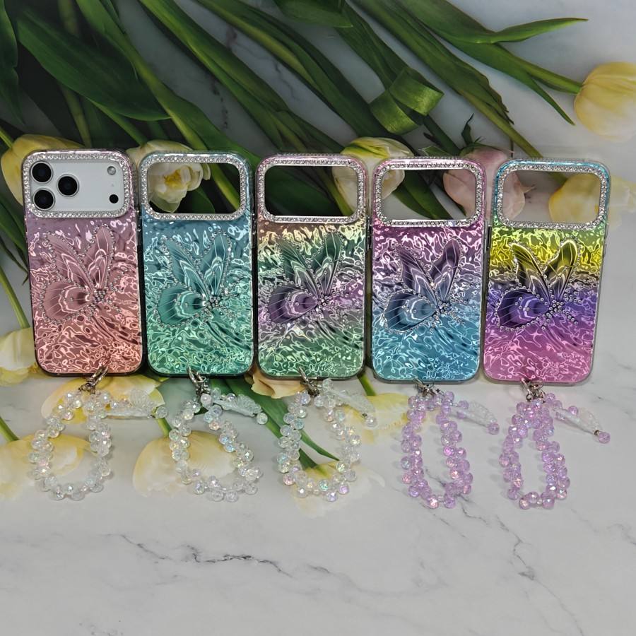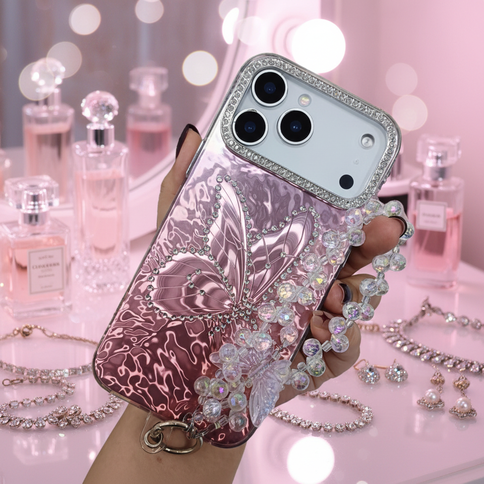 Funda de Teléfono Móvil de Lujo con Pedrería para iPhone X, Xr, Xs Max, 11, 12, 13, 14, 15, 16, 17 Pro Max, Fundas de Teléfono con Diseño de Mariposa para Redmi 14C