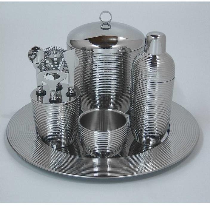 Juego de Bar de Acero Inoxidable Acanalado de Lujo, 7 Piezas, Kit Profesional para Bartender con Cubitera, Coctelera y Bandeja, Herramientas para Cocteles, Ideal para Regalo