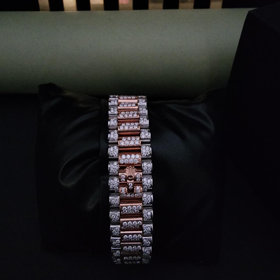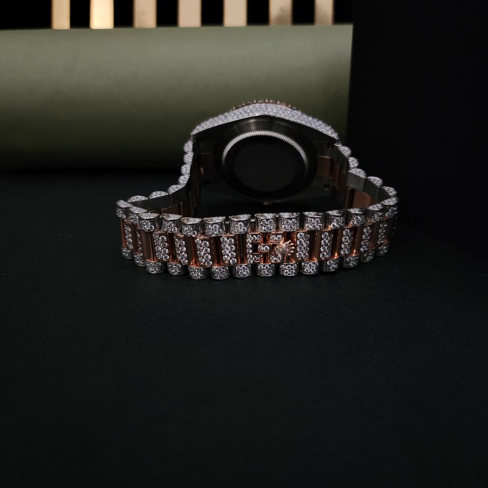Reloj Analógico de Lujo con Esfera Romana de Dos Tonos, Diamantes Moissanite, Correa President Completamente Adornada, Movimiento Suizo de Acero Inoxidable