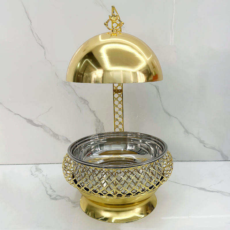 Calentador de Buffet Rectangular de Lujo en Oro Rosa con Tapa Enrollable de Acero Inoxidable y Ventana de Vidrio para Hostelería y Catering