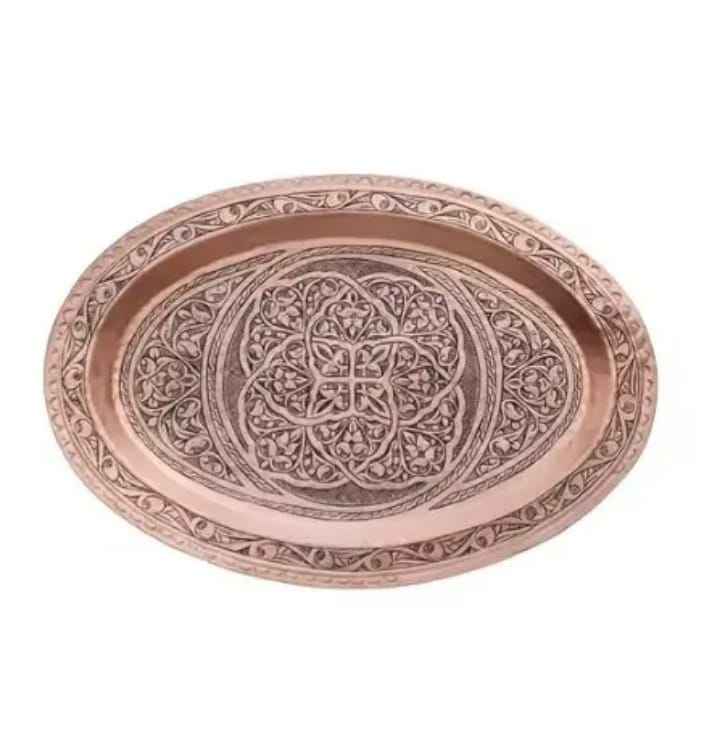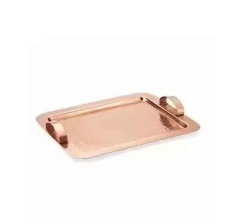 Bandeja Redonda de Cobre de Lujo con Borde Acanalado, Acabado Espejo, Plato Metálico Color Oro Rosa, Bandeja para Servir Bebidas en Bodas y Fiestas