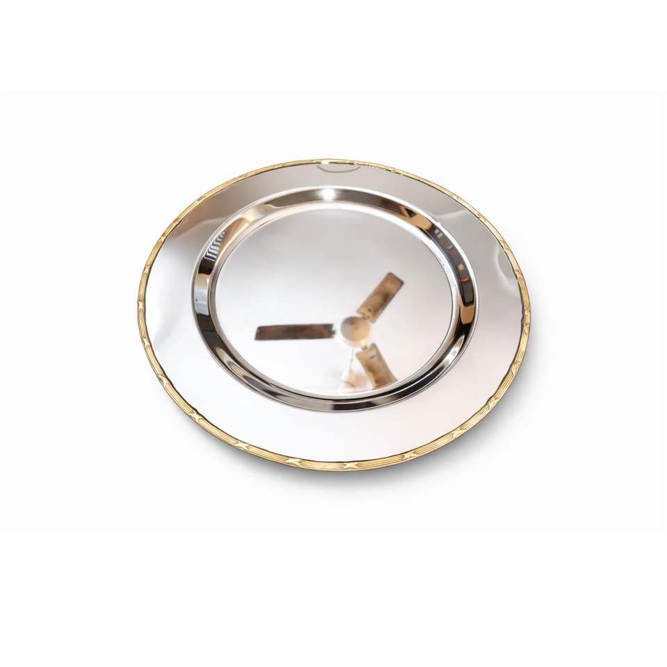 Plato de presentación redondo de metal de lujo con borde dorado y base plateada, plato decorativo para bodas, plato de cena para decoración de mesas de hotel y fiestas.