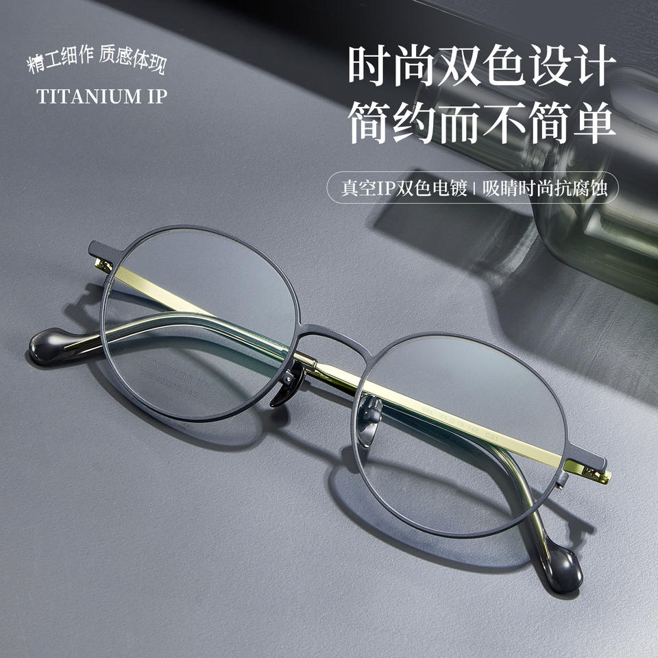Montura de Gafas Redonda de Titanio Puro de Lujo con Almohadillas Nasales Antideslizantes, Unisex, Montura Completa, Lentes Acrílicas, Hecho en Danyang