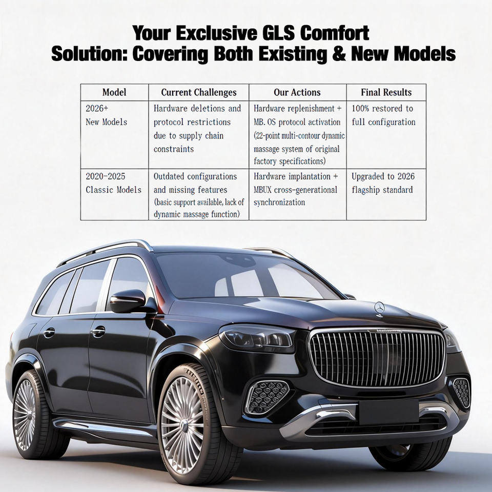 Asientos de Lujo de Segunda Fila con Múltiples Contornos para Benz GLS | Adaptador para Masaje con Piedras Calientes Estilo Maybach | Kit de Codificación SCN Sin Errores