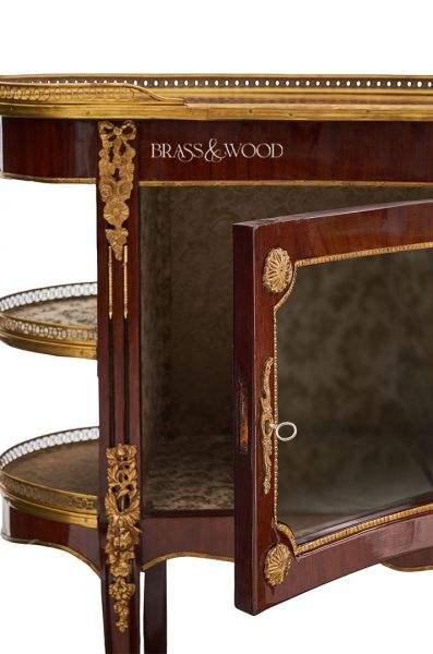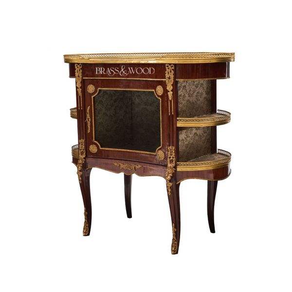 Mesa Auxiliar de Madera Semicircular de Lujo con Dos Estantes, Detalles en Latón, Tapa de Mármol y Elegante Diseño Clásico Europeo