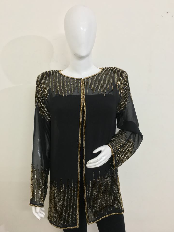 Chaqueta de lentejuelas de lujo Ropa de mujer adulta Chaqueta corta Ropa de fiesta de vacaciones de noche Vestido frente Vestido abierto Traje Trabajo con cuentas a mano
