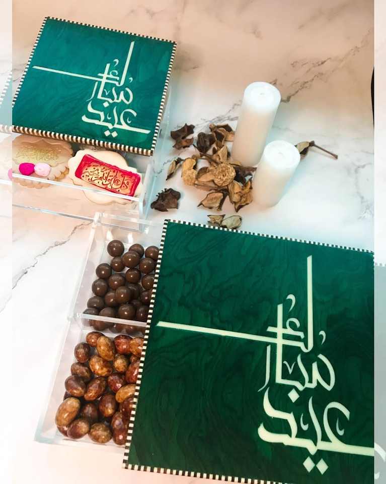 Elegante caja de regalo acrílica con logotipo personalizado y tapa de nácar, dátiles de chocolate de lujo y almacenamiento de dulces, embalaje de regalo de Ramadán Eid