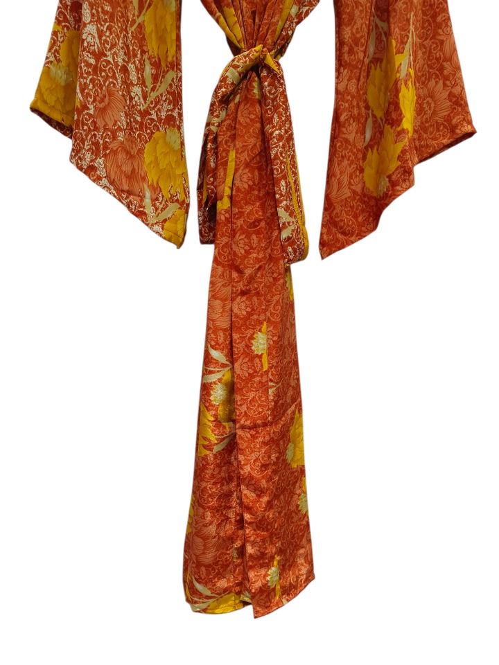 Kimono de Lujo con Parches de Seda, Túnica Larga para Dormir o como Cubre Bikini, Kimono Hecho a Mano con Sari de Seda Reciclada Vintage de la India
