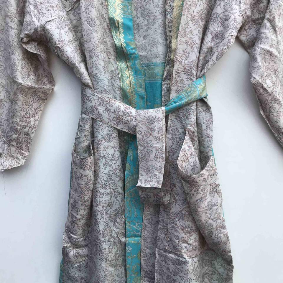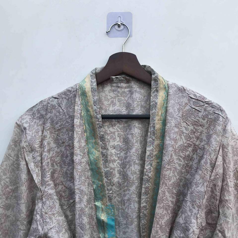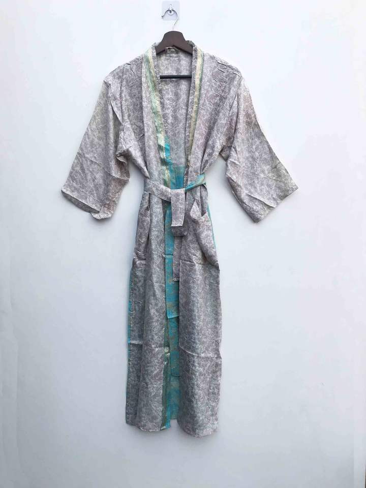 Kimono de Lujo con Parches de Seda, Túnica Larga para Dormir o como Cubre Bikini, Kimono Hecho a Mano con Sari de Seda Reciclada Vintage de la India