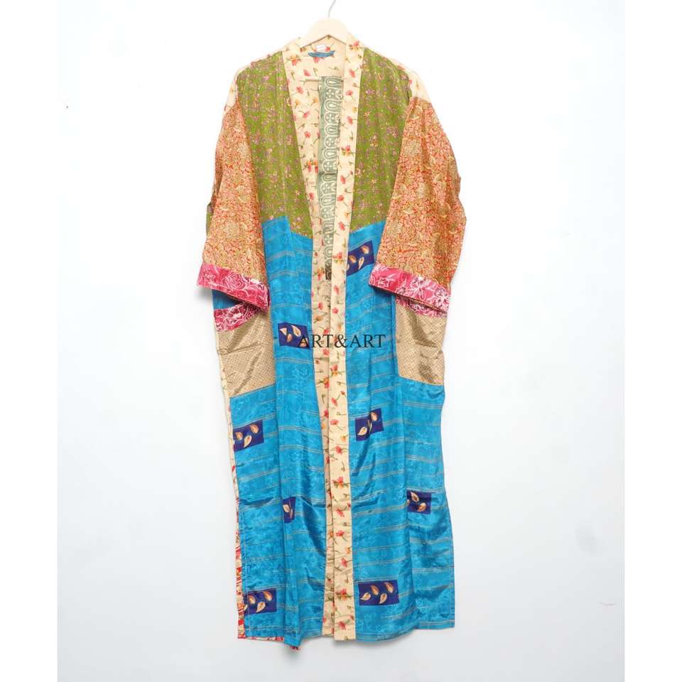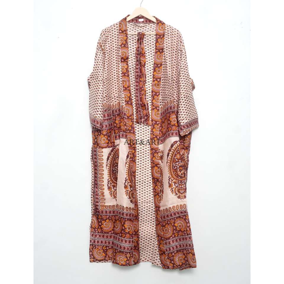 Kimono de Lujo con Parches de Seda, Cuello en V, con Cordón Ajustable, Estilo Vintage, para Invierno y Otoño, Bata Larga y Suave para Mujer, Ropa de Dormir Boho