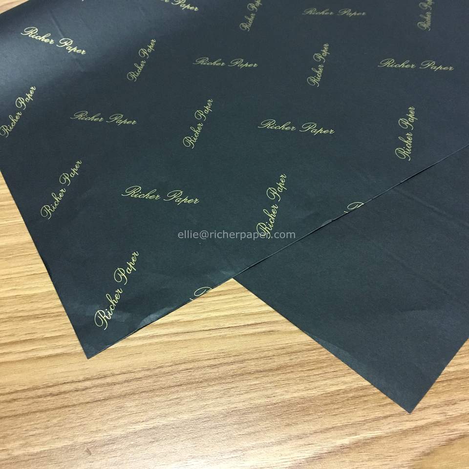 Papel de seda de lujo negro y dorado para envolver regalos con logo personalizado