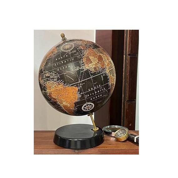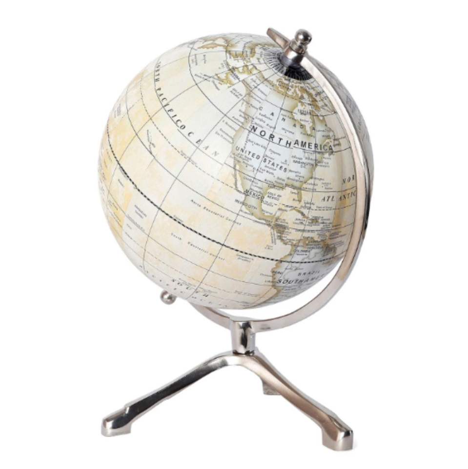 Globo Terráqueo Giratorio de Lujo con Base de Metal Plateado, Estilo Antiguo, Color Crema, para Decoración del Hogar, Estudio y Regalos Corporativos