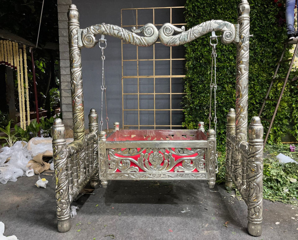 Product name:Luxury Silver Peacock Carved Baby Swings Decor