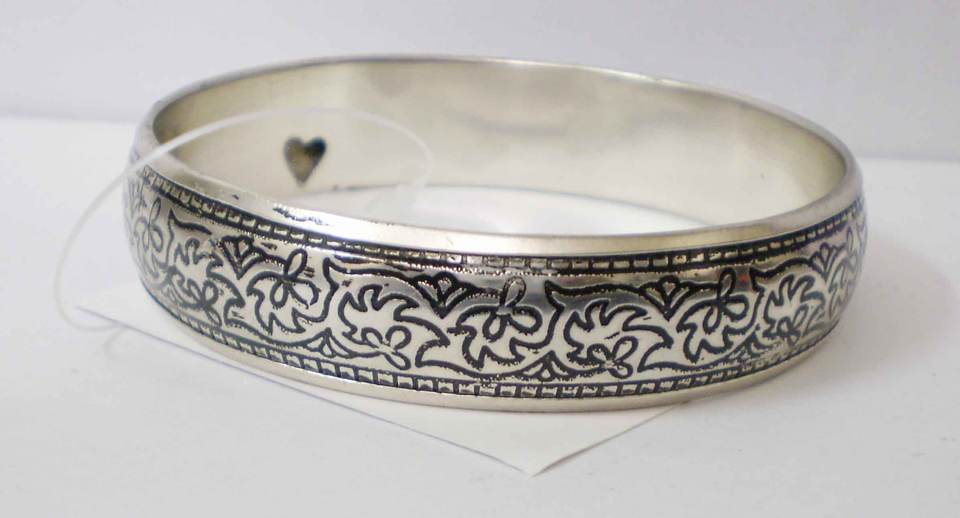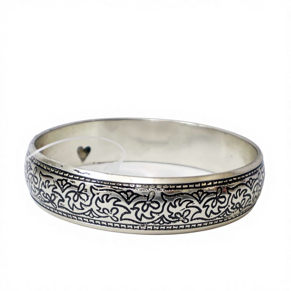 Brazalete de Cobre Plateado de Lujo con Intrincado Diseño de Encaje Floral Antiguo, Pulido Sofisticado, Artesanía en Metal