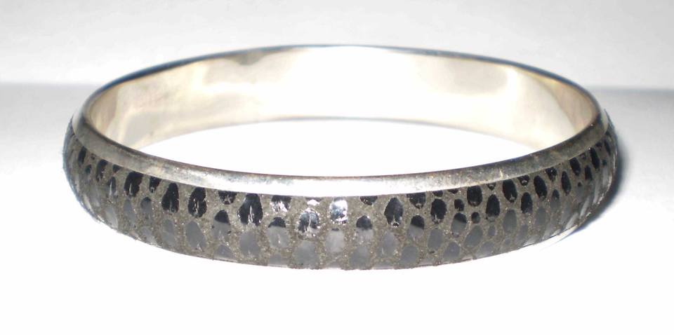 Brazalete de Cobre Delgado de Lujo con Patrón de Piel de Serpiente Negra para Mujer, Brazalete de Moda con Estampado Animal, Texturizado, Elegante, en Tono Plateado