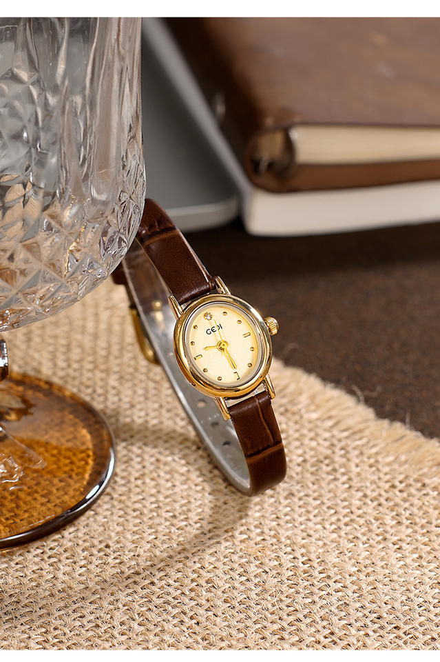 Reloj de Cuarzo Ovalado Pequeño y Delicado de Lujo para Mujer, Elegante Correa de Cuero Retro, Alta Gama, Personalizado de Fábrica