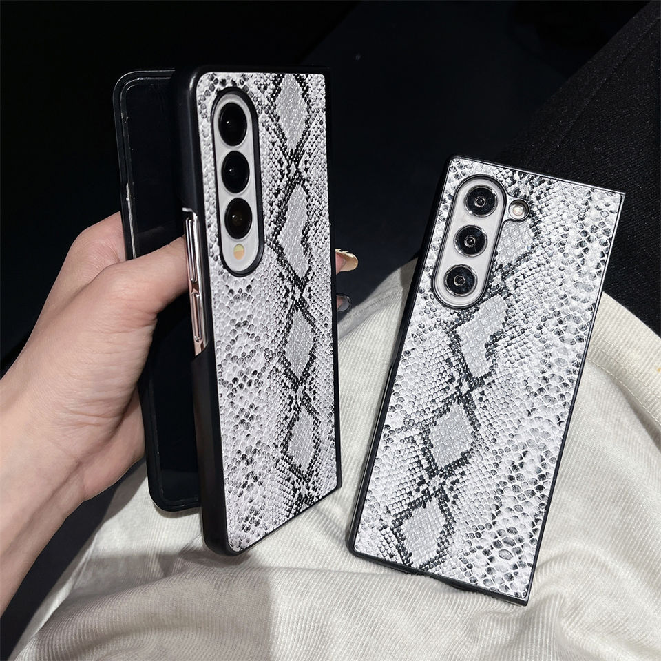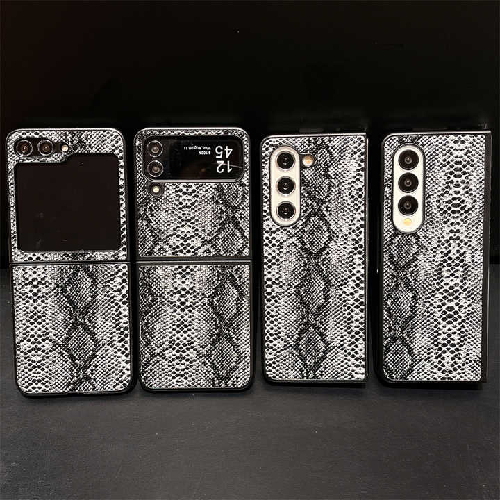 Funda de Lujo con Patrón de Piel de Serpiente para Samsung Galaxy Z Flip 4 5 6 de Cuero PU y PC Rígido Funda Protectora para Galaxy Z Fold 4 5 6