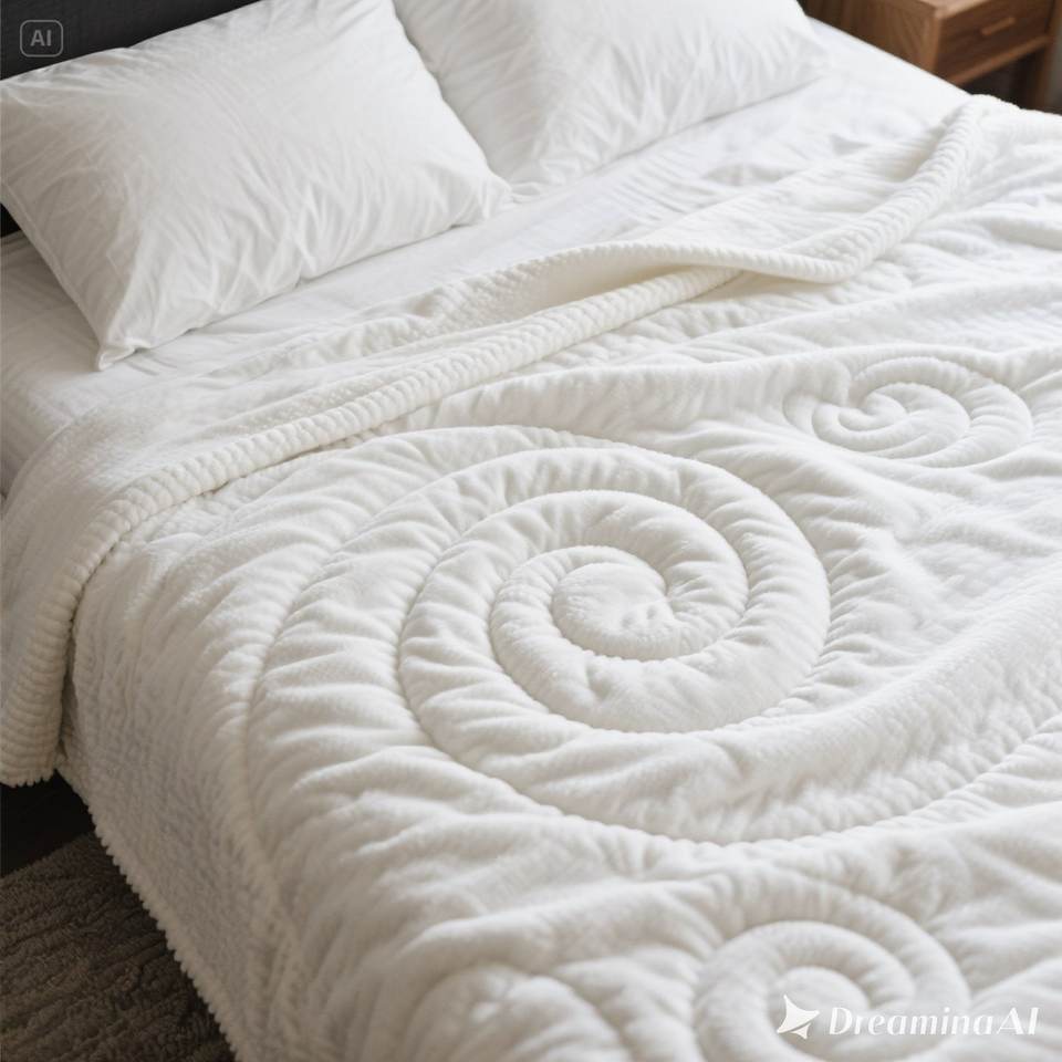 Manta de lana suave de lujo, diseño en relieve en espiral blanco acogedor, tamaño único