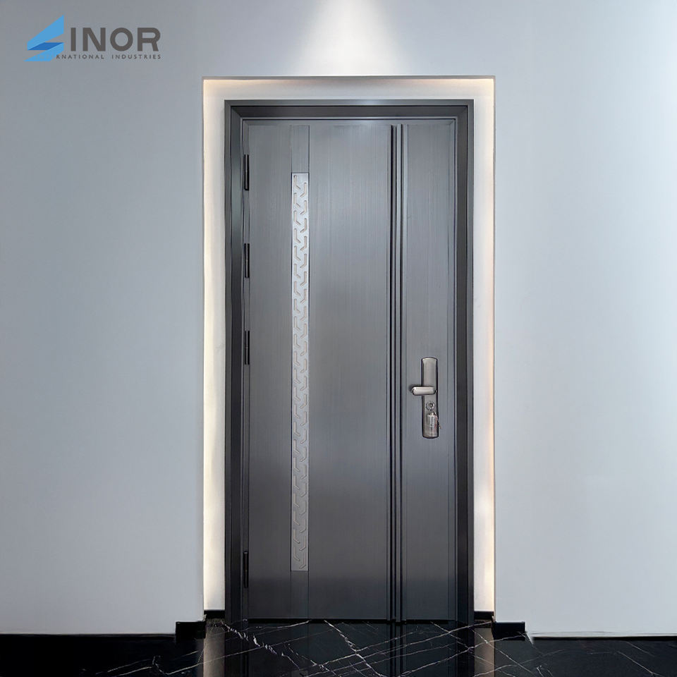 Puerta de Entrada de Madera Maciza de Lujo con Herrajes Dorados y Diseño Insonorizado para Proyectos Residenciales de Alta Gama