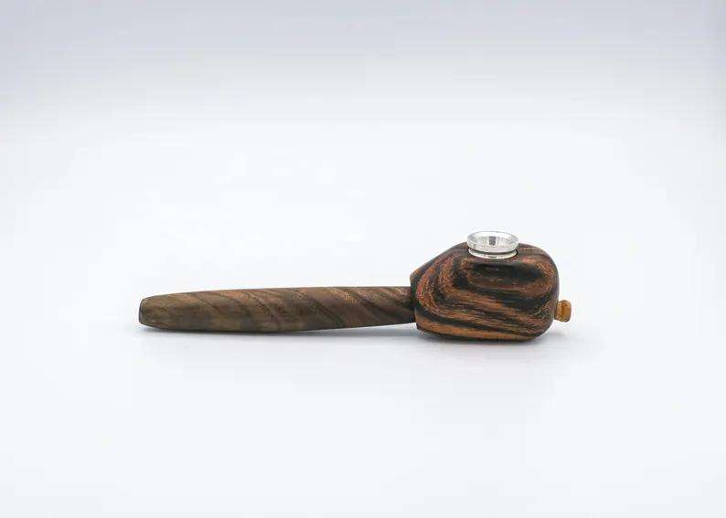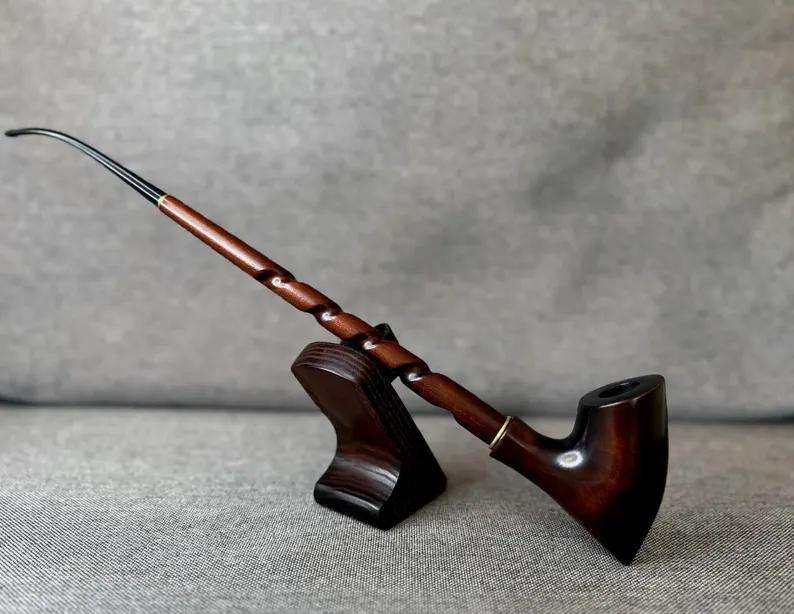 Juego de Fumar de Diseño Único Hecho a Mano, Ecológico, Reutilizable, Portátil, de Madera Maciza de Lujo, Tipo Curvado Vintage, Pipa de Madera Natural