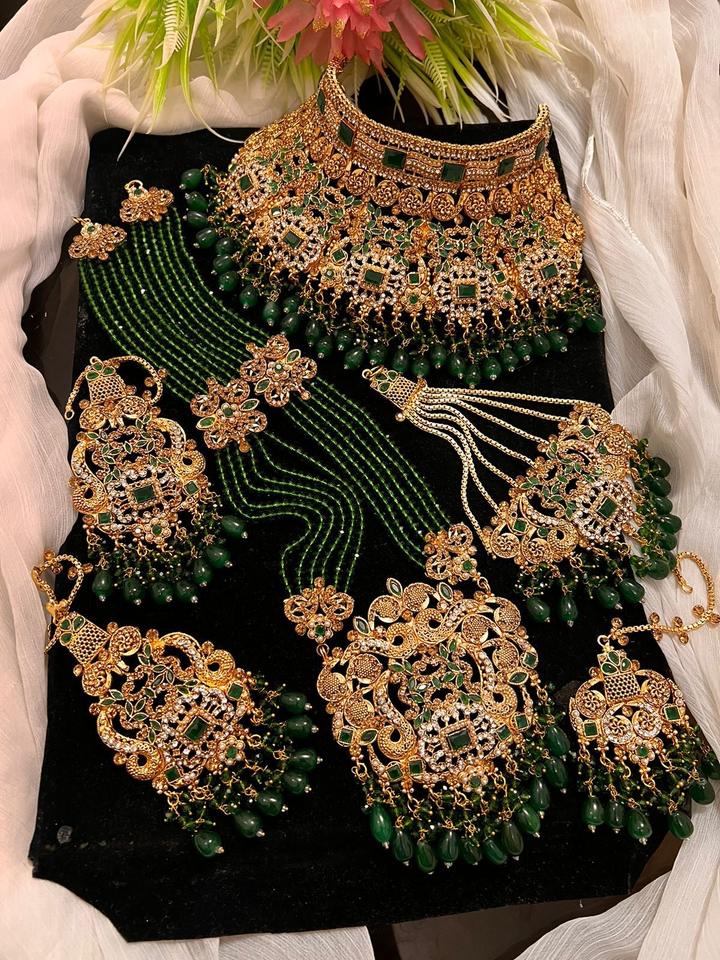 Joyería de boda de lujo del sur de Asia para damas, conjunto de collar de novia adornado fino y detallado con gotas de perlas de Rubí, placa de oro