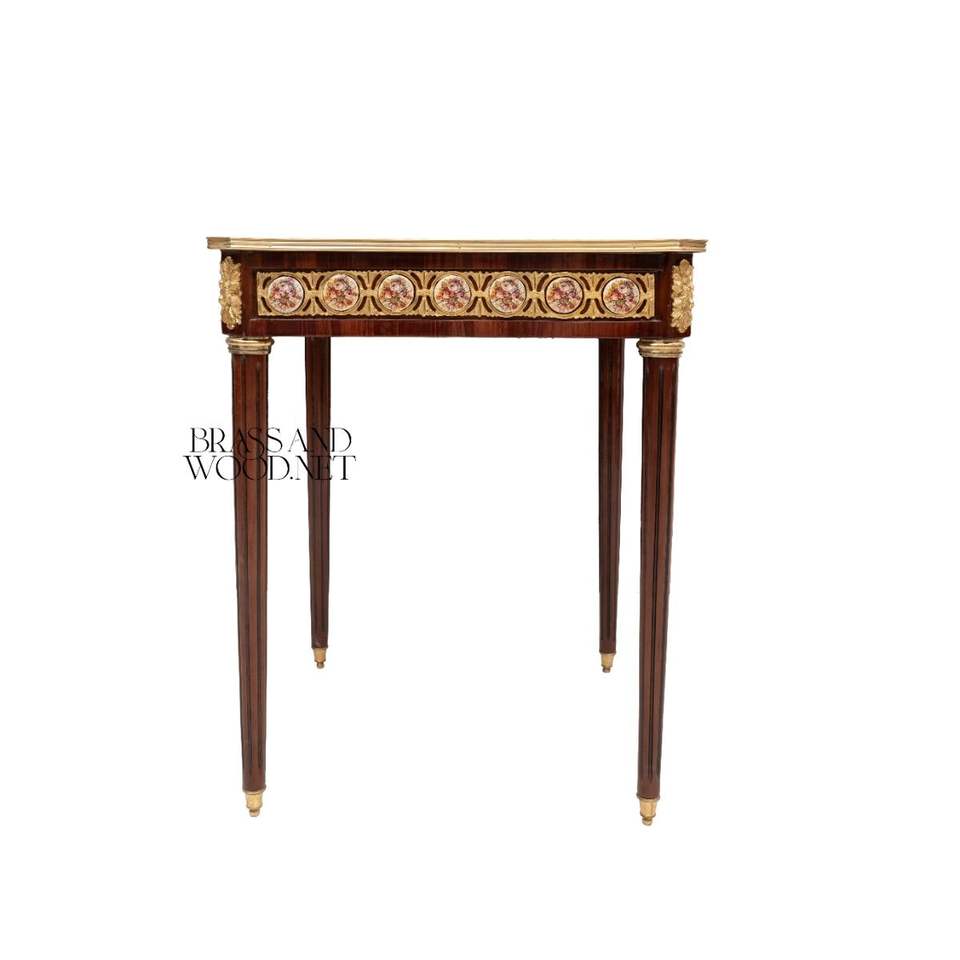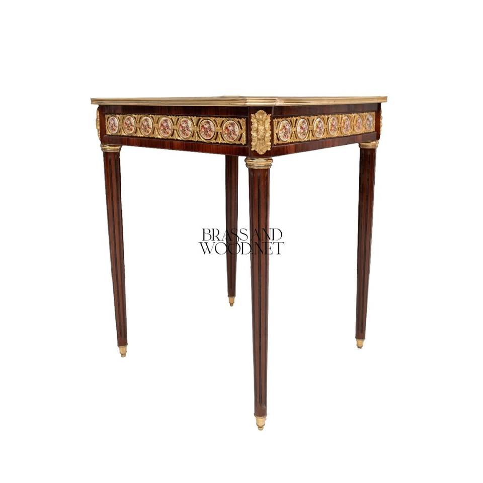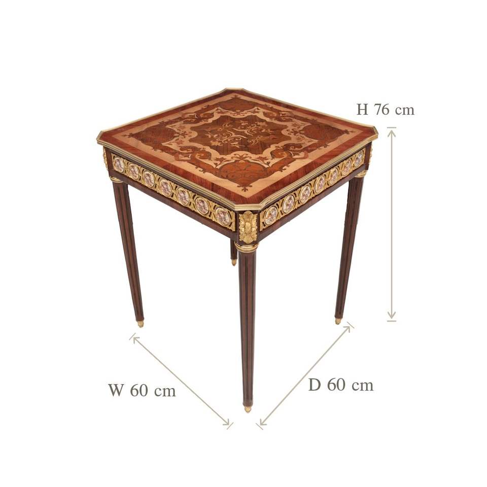 Mesa Auxiliar Cuadrada de Lujo con Intrincados Medallones Geométricos de Porcelana Pintados a Mano y Decoración de Latón Dorado Estilo Palacio