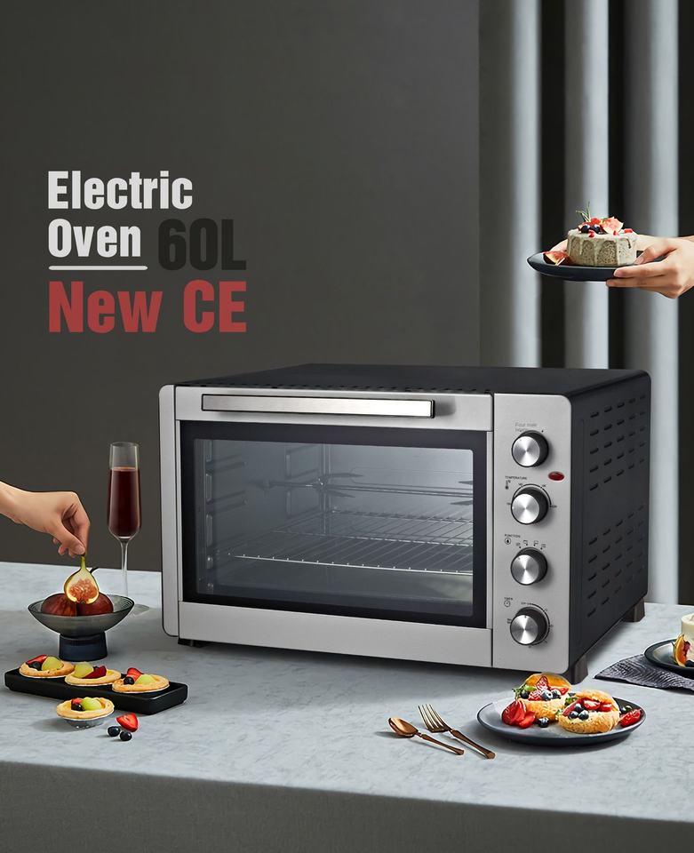 Horno Tostador Eléctrico de Convección de Acero Inoxidable de Lujo, 4 Perillas, 500W, Control Táctil LED, Estilo Francés para Exteriores, para Restaurante