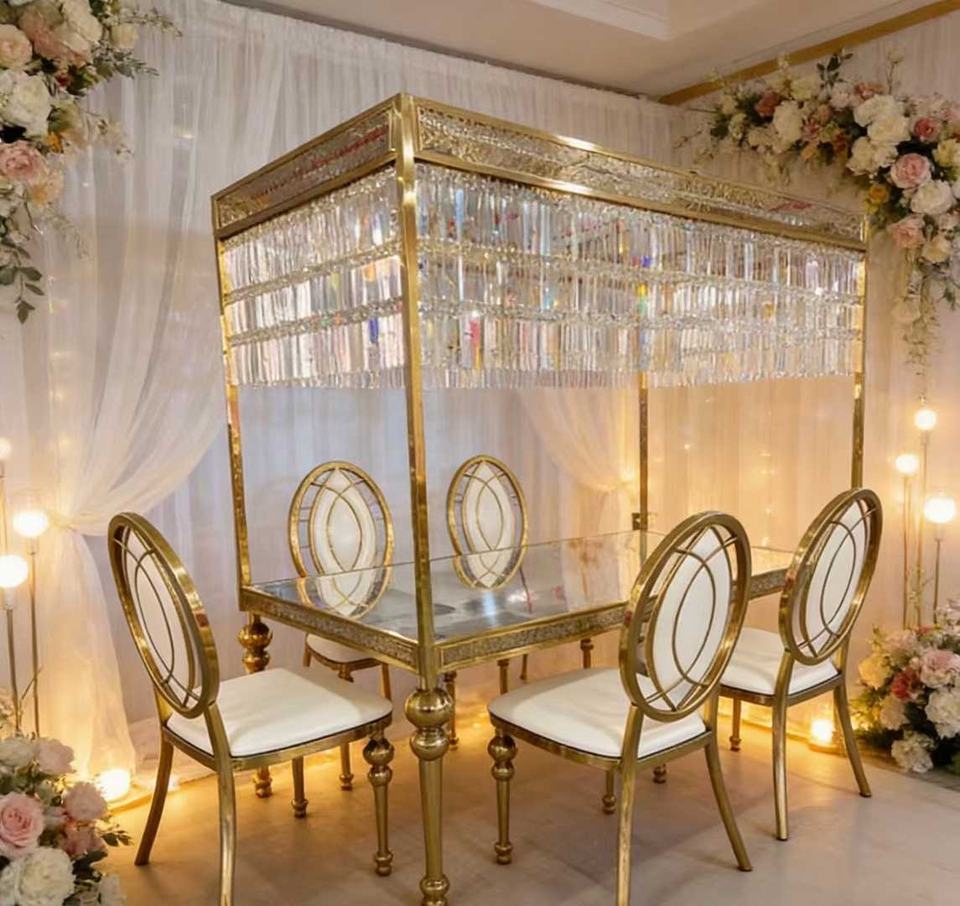 Juego de Mesa de Comedor de Acero Inoxidable de Lujo, Sillas y Mesas para Bodas, Salón de Banquetes, Hotel, Eventos