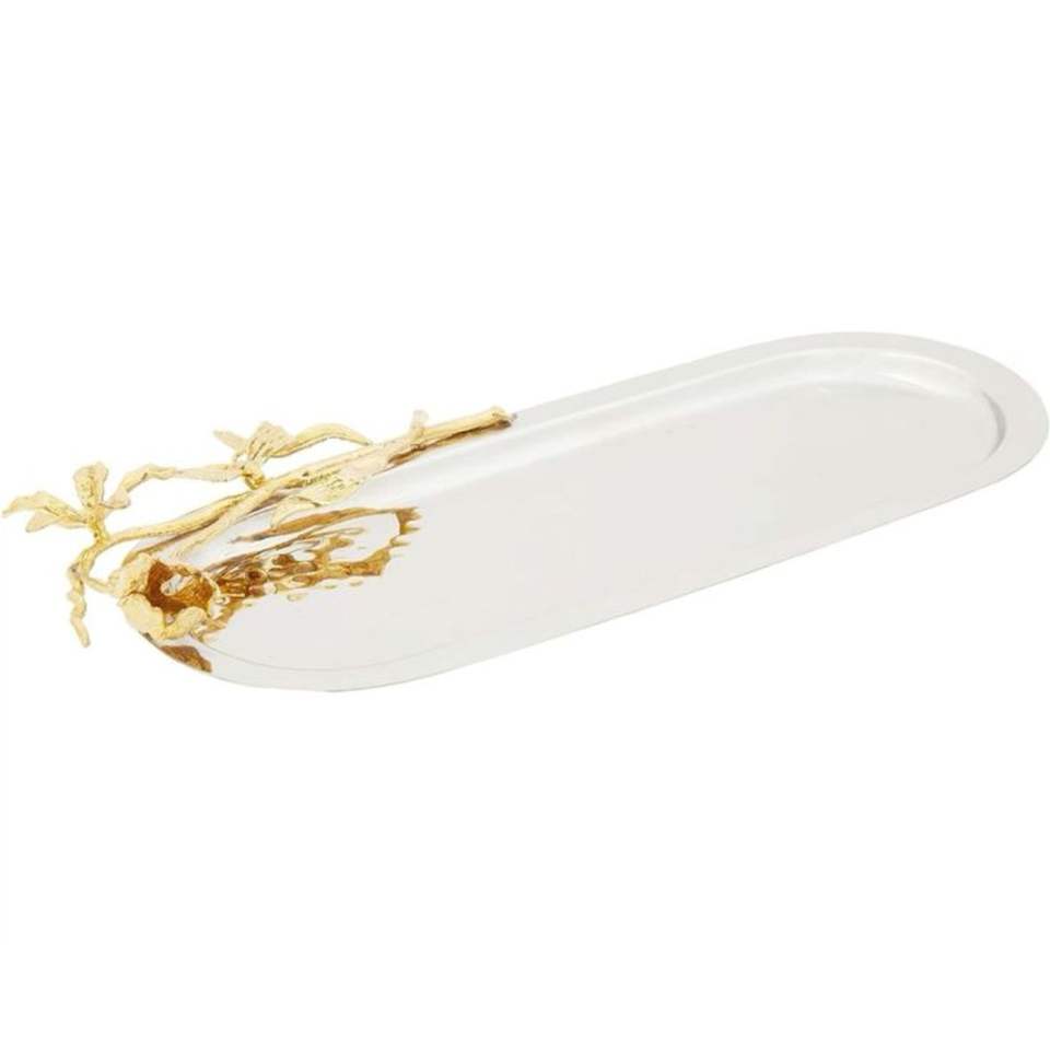 Bandeja Rectangular de Acero Inoxidable de Lujo con Asas de Hoja de Oro | Elegante Plato Decorativo de Metal para Hotel y Bodas