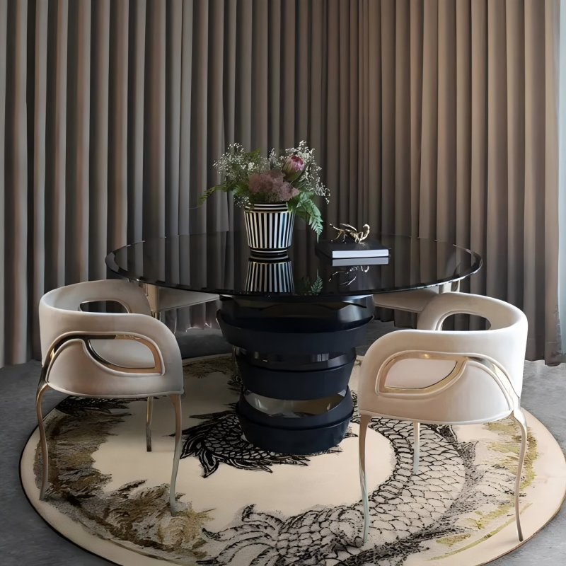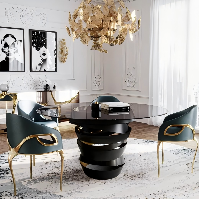 Spiral base circular glass dining table