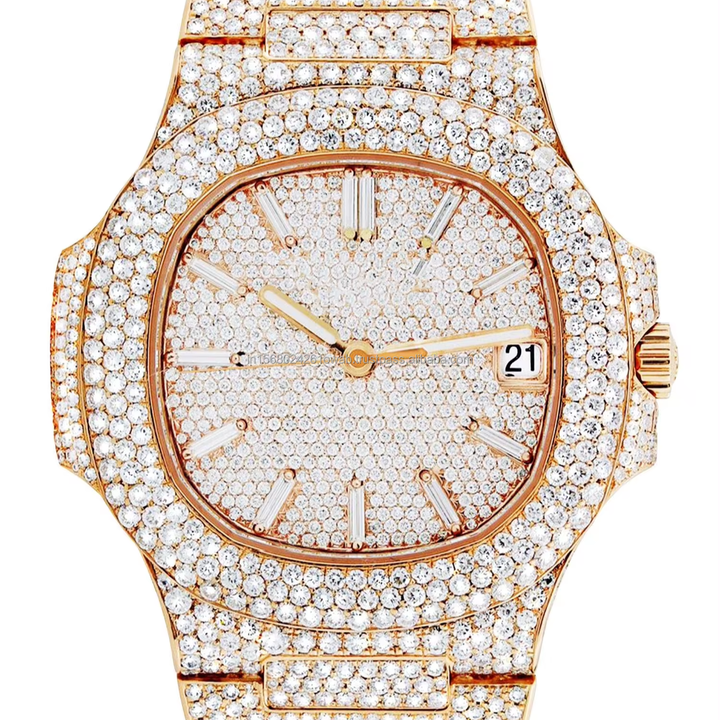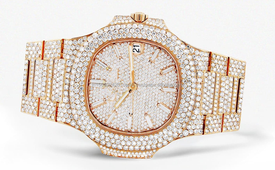 Ajuste de bisel de declaración de lujo Tono dorado Automático Lab Grown Diamond Relojes para hombres Moda antigua Premium Ocasiones de vidrio