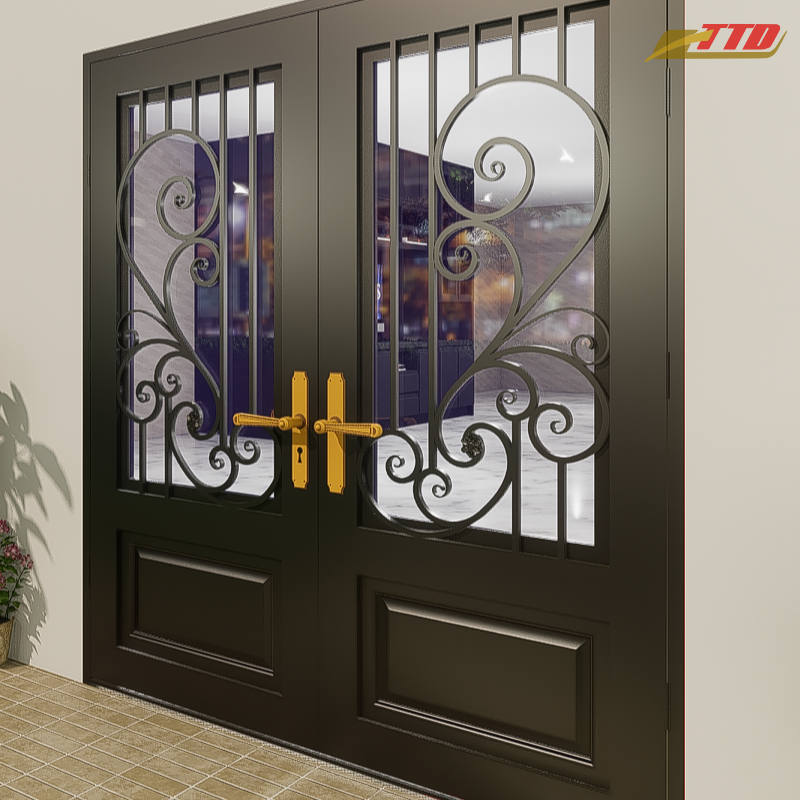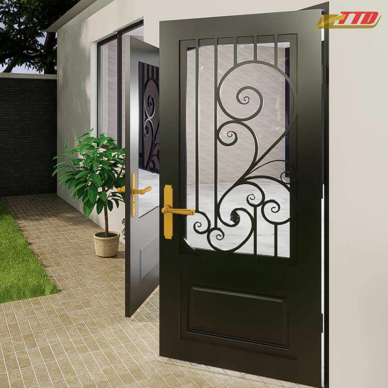Puertas de Entrada de Acero de Lujo de Proveedor Vietnamita, Puertas Principales Impermeables Hechas a Mano con Estilo Artístico y Artesanía Superior