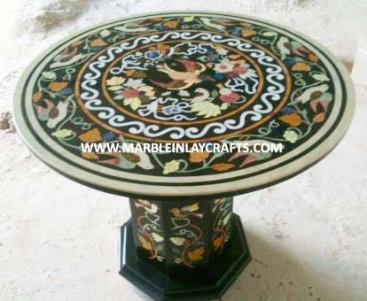 Estilo de lujo y producto hecho en India con decoración de jardín, mesa de comedor con incrustaciones de mármol negro hecha a mano, exclusiva.